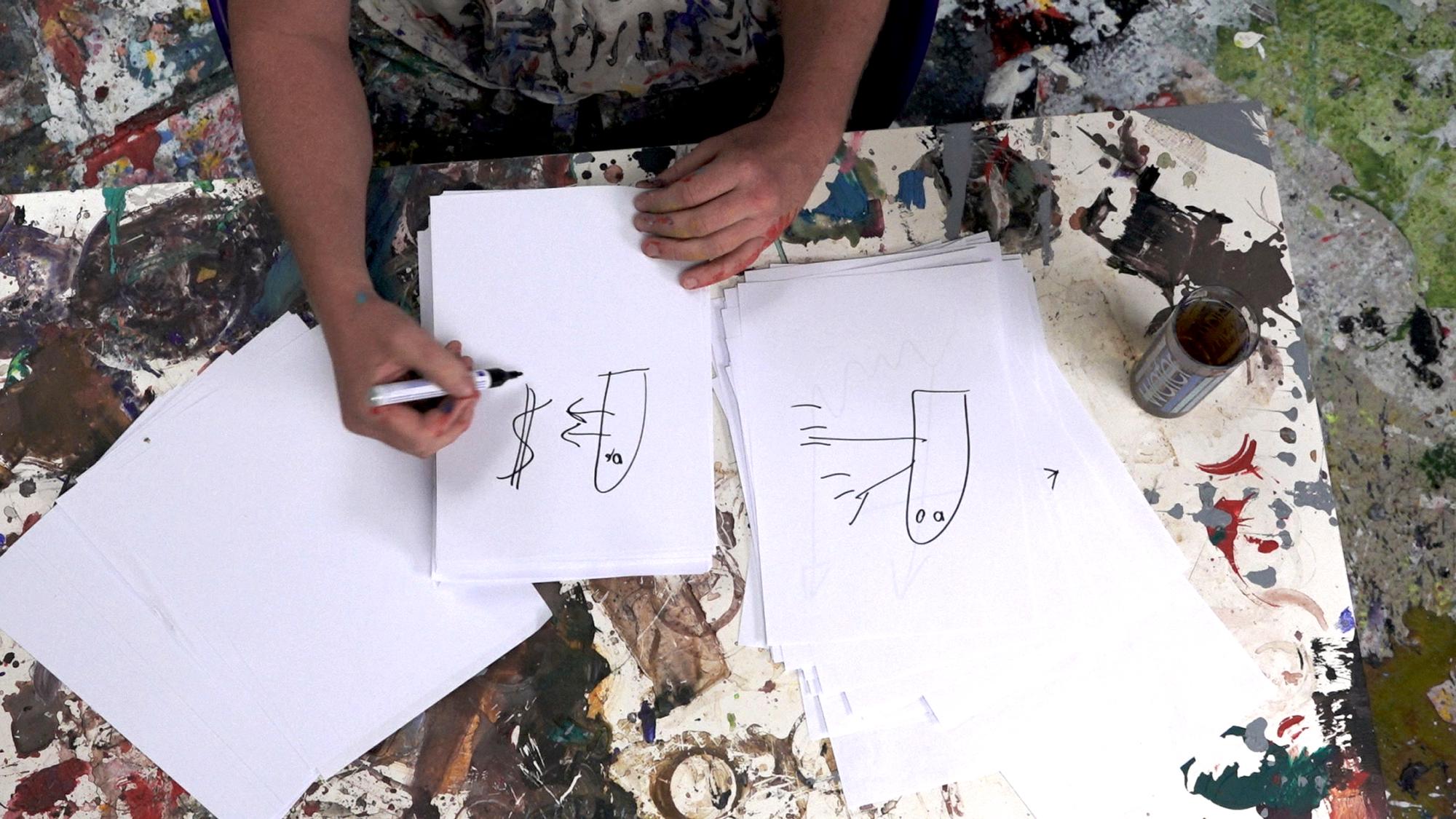 "Das Atelier ist ein tennishallengrosser Raum mit tausenden, wenn nicht zehntausenden von Werken. Aber es hat auch einen Tisch, an dem er arbeitet. Auf dem Boden sind irgendwelche Bilder. Dort schüttet er was drauf, eine Säure oder so, die das Bild zerfrisst und dem Bild eine neue Zeichnung gibt. Wenn ich ein bisschen Geld hätte, dann würde ich das ganze Studio, genau so wie es ist, alles kaufen, verschliessen und mindestens hundert Jahre so lassen."